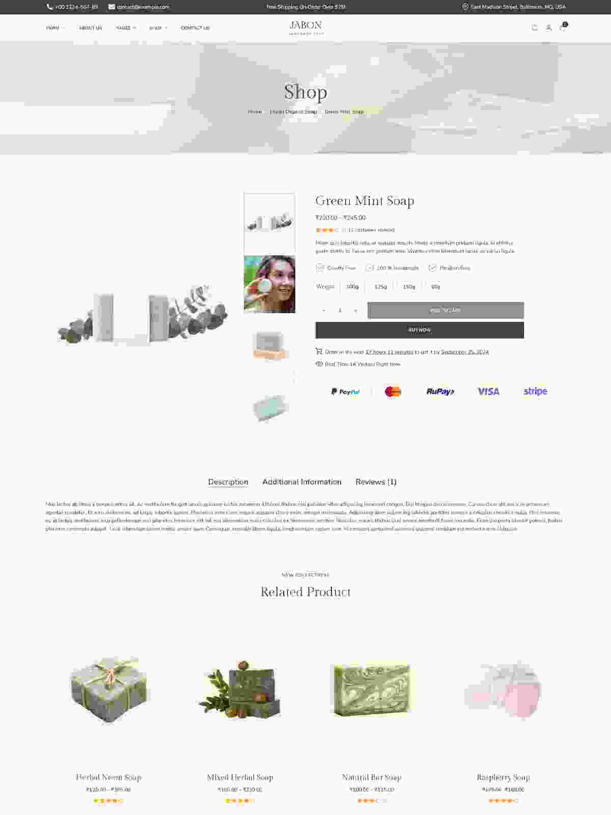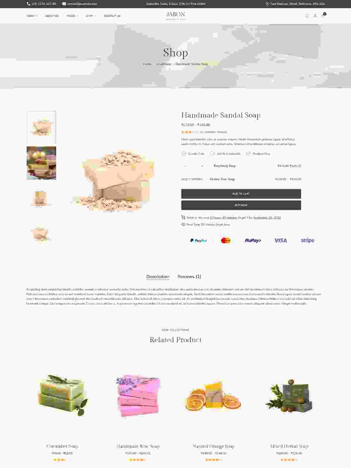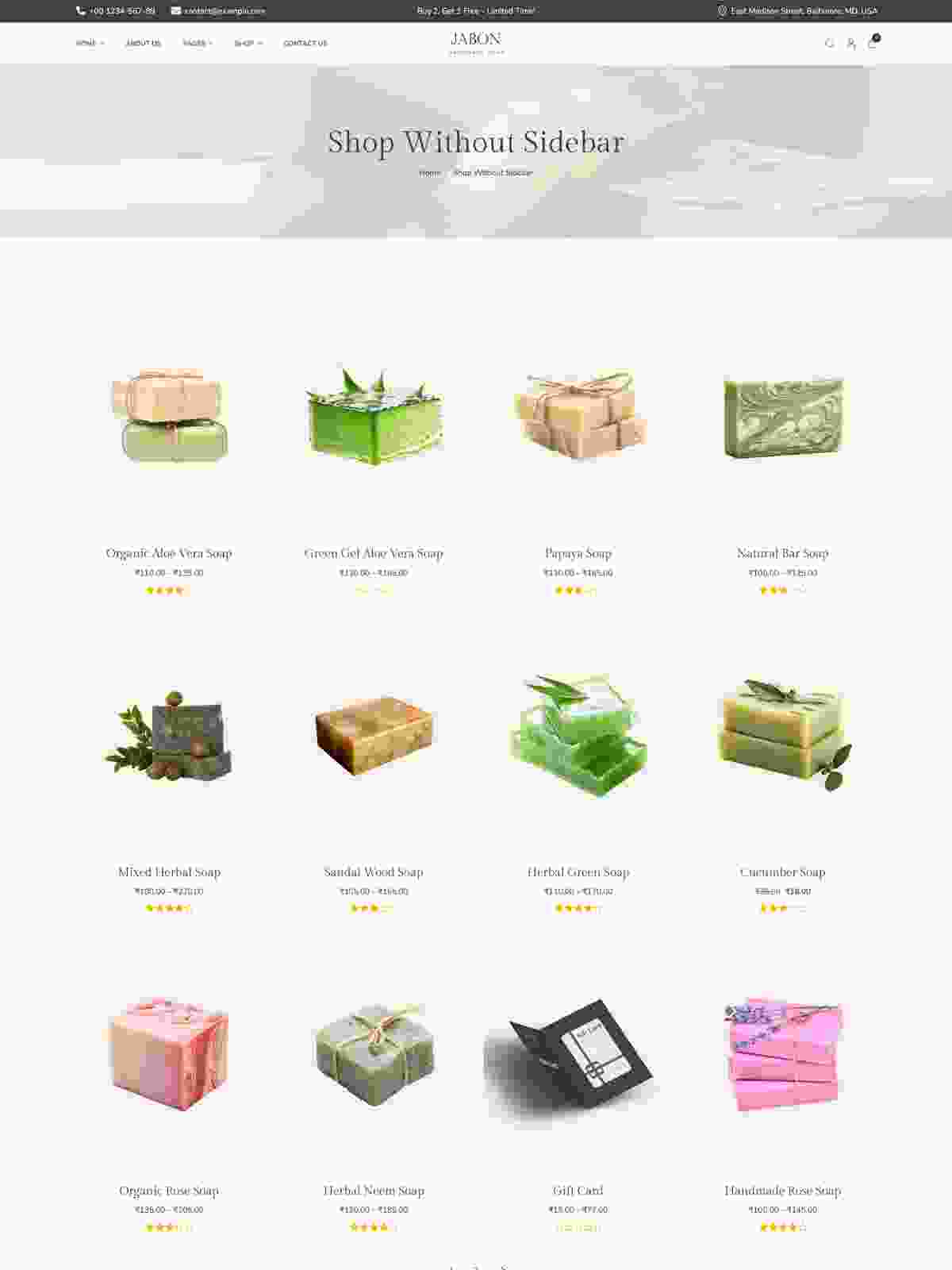 Jabon – Handmade Soap WordPress Theme, Best Designs for Handmade Soap and Cosmetics Beauty Store Websites. It Is Suitable for Natural Soap Products and Homemade Soap Manufacturing Business Ecommerce, Natural Health Care Stores, Beauty Product, Natural Medicine Clinic, Organic and Natural Products eCom Companies, Organic Shops, Organic Life Style Tools, Multipurpose Cosmetic Shop websites.