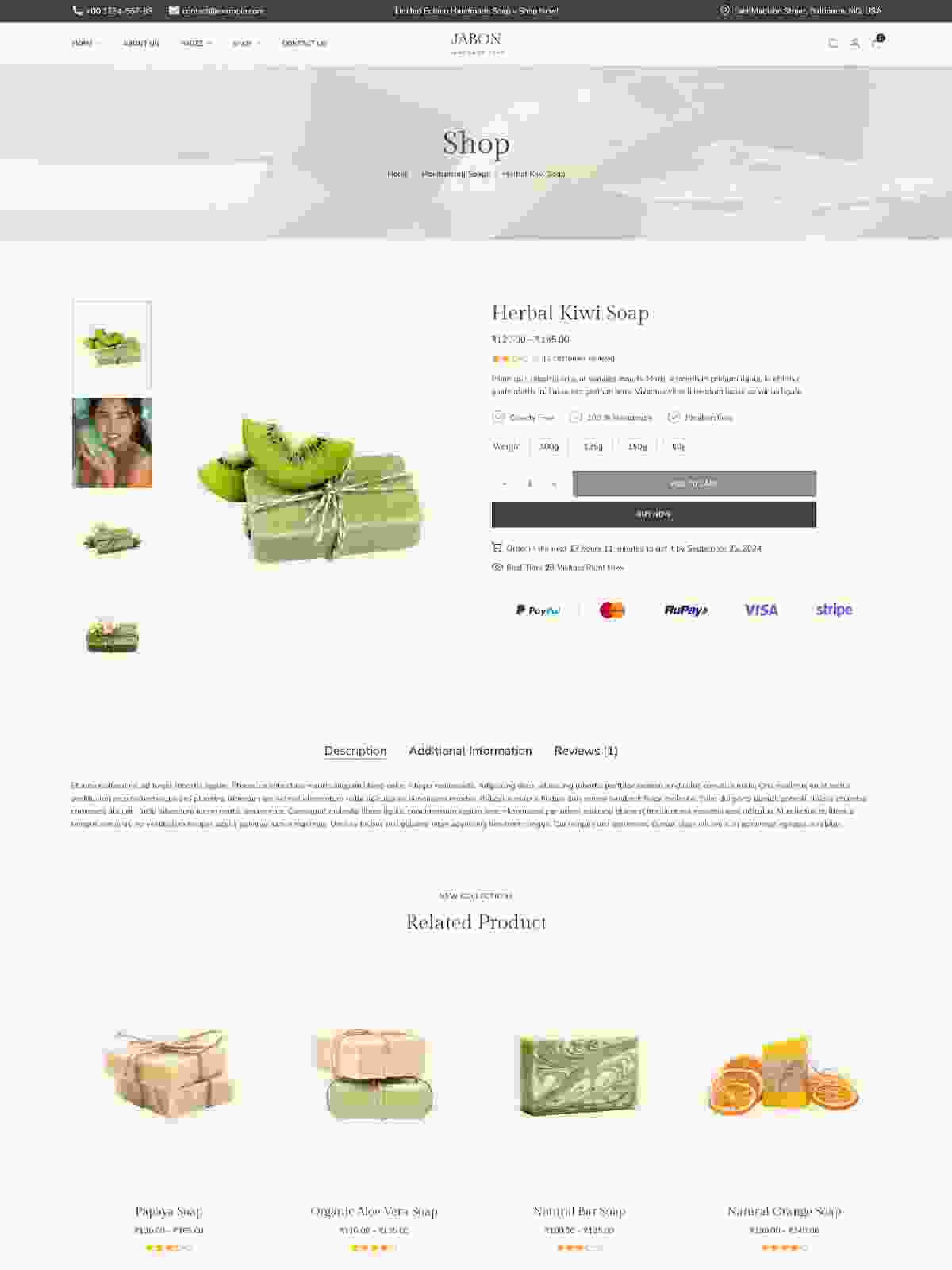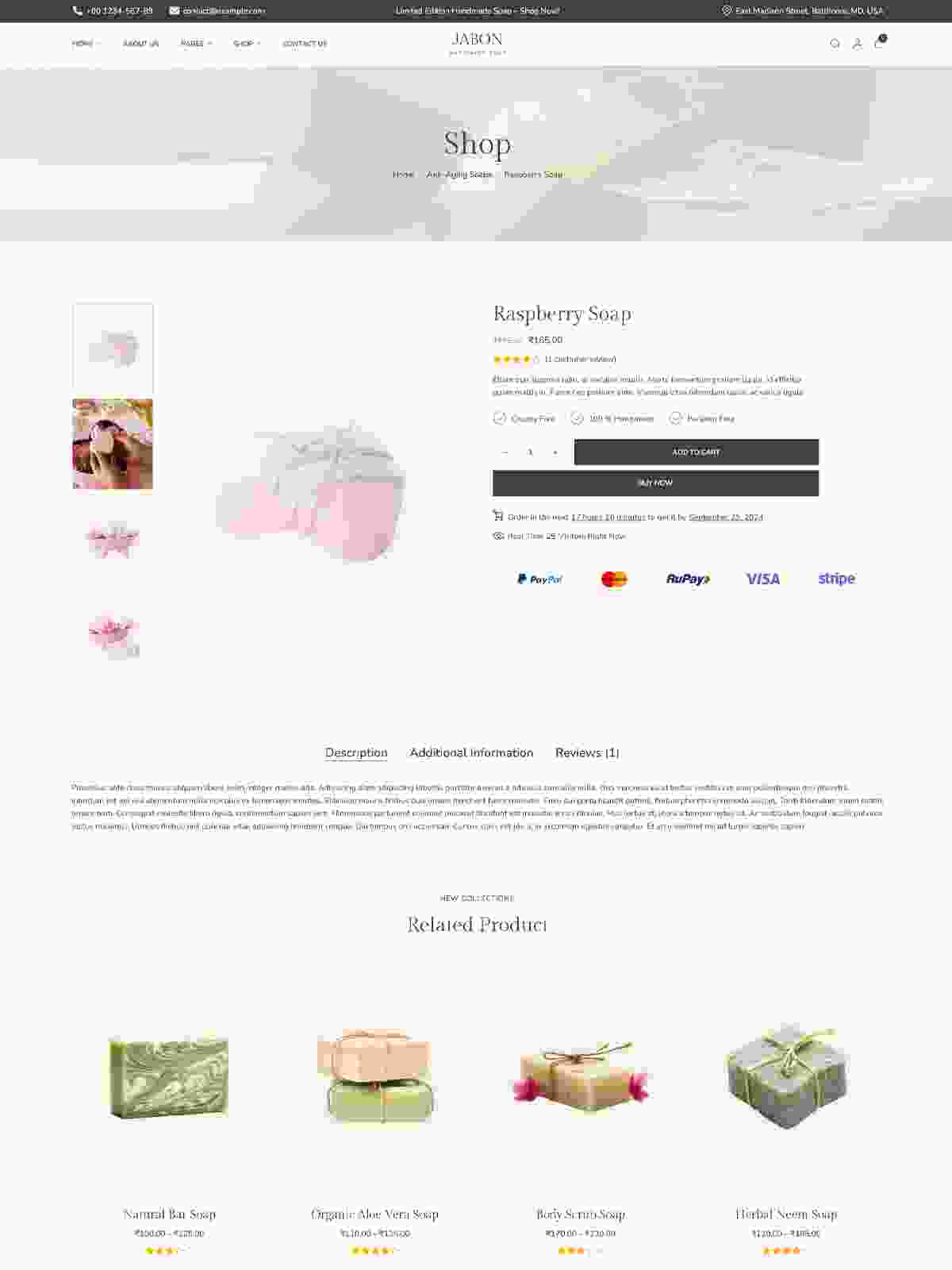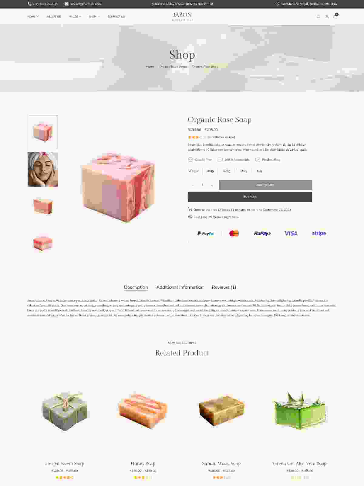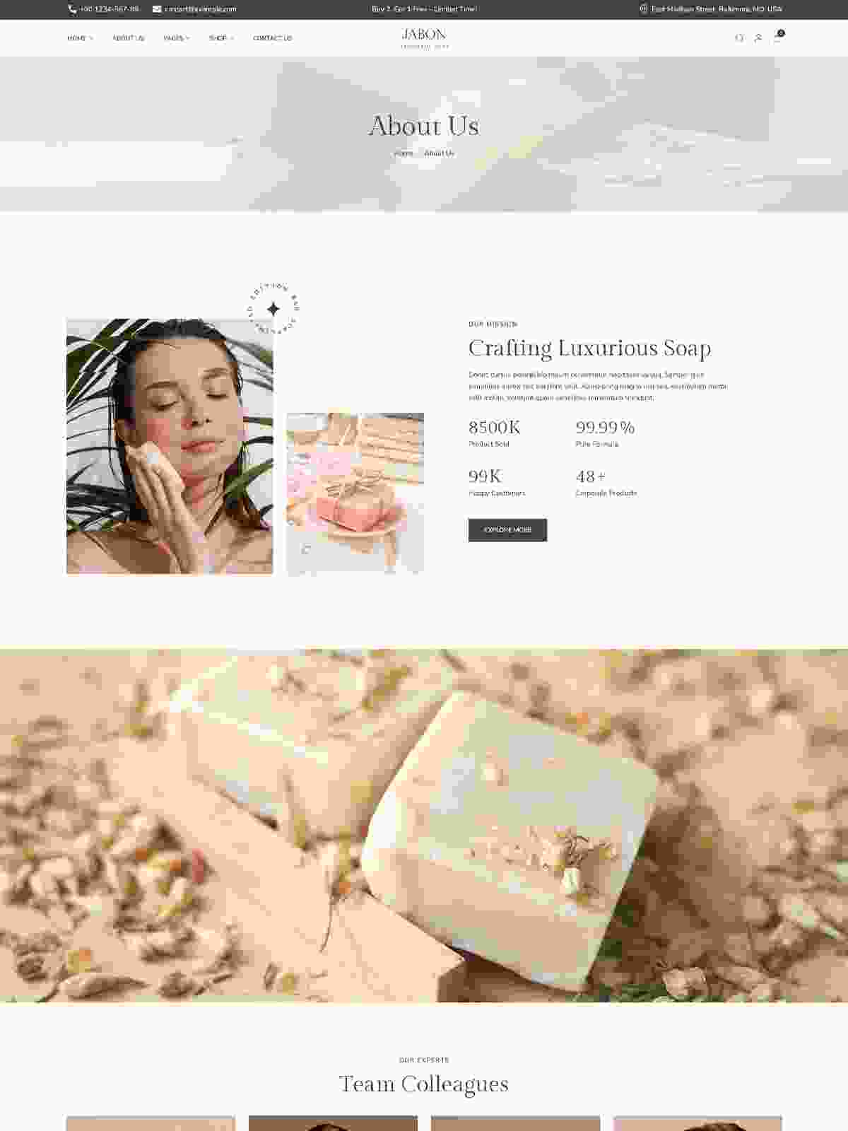 Jabon – Handmade Soap WordPress Theme, Best Designs for Handmade Soap and Cosmetics Beauty Store Websites. It Is Suitable for Natural Soap Products and Homemade Soap Manufacturing Business Ecommerce, Natural Health Care Stores, Beauty Product, Natural Medicine Clinic, Organic and Natural Products eCom Companies, Organic Shops, Organic Life Style Tools, Multipurpose Cosmetic Shop websites.