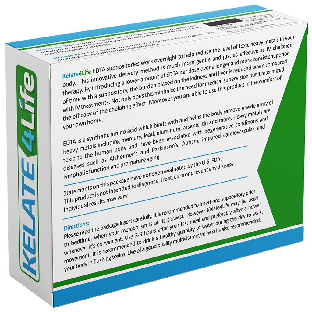 Kelate4Life is produced in the United States in an FDA registered and GMP compliant facility. Millions of EDTA suppositories have been used over the years, giving this method a long history of use and a solid reputation for safety.